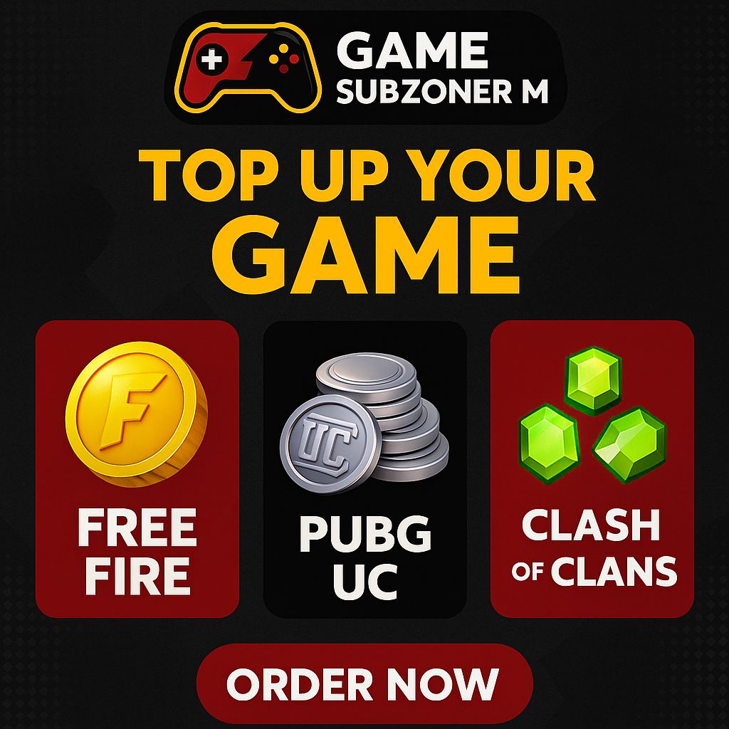 বা/মা বা ফ্যামিলির ফোন থেকে টাকা চুরি করে অর্ডার করলে তার বিরুদ্ধে আইনগত ব্যাবস্থা নেওয়া হবে! GAME SUB ZONE RMএ রাত দিন ২৪ ঘন্টাই টপআপ চালু থাকে । ৩০ সেকেন্ডেই ডেলিভারী হয় - যেকোন সমস্যায় আমাদের Whatsapp এ মেসেজ দিন 01764291956